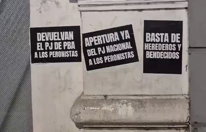 Uno de los principales apuntados es Máximo Kirchner, el actual presidente del Partido Justicialista (PJ) bonaerense. Tal es así que el lunes por la noche, según consigna el medio infocielo, aparecieron carteles pegados en la sede partidaria, ubicada en La Plata, cuestionando su liderazgo. “Basta de herederos y bendecidos“, “el Partido Justicialista no es tu monarquía“, “Máximo: el PJ no es tu juguete“, fueron algunas de las consignas que aparecieron en la cuadra de calle 54, entre 7 y 8.