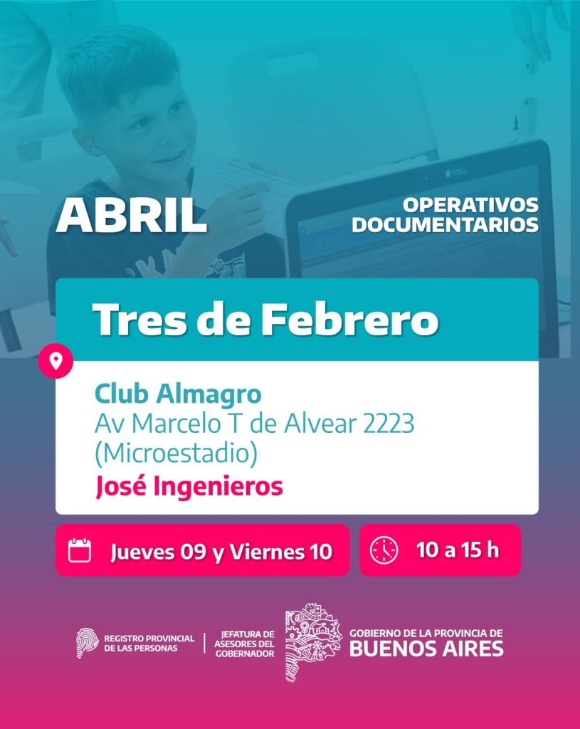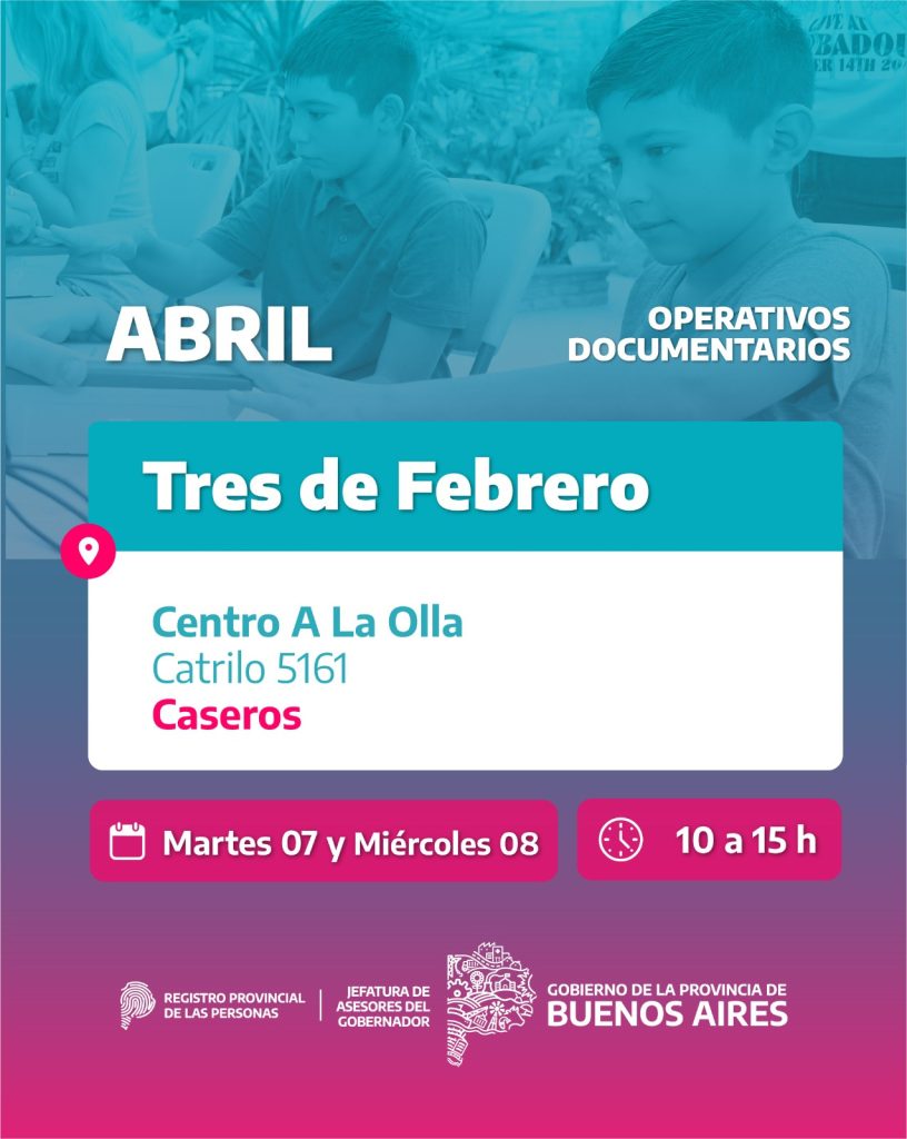 La gestión de la provincia de Buenos Aires llega al municipio para llevar adelante un operativo de la mano del Registro Provincial de las Personas. Los vecinos podrán tramitar gratuitamente: partida de nacimiento, cambio de domicilio, DNI, entre otros.