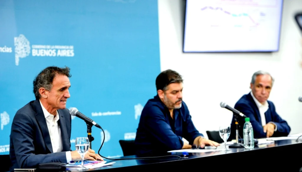 El ministro de Infraestructura y Servicios Públicos bonaerense, junto al presidente de AUBASA, José Arteaga, acompañaron en la conferencia de prensa al ministro de Gobierno, Carlos Bianco, para dar un informe la situación de la obra pública en la provincia de Buenos Aires y el plan de infraestructura prioritaria para el año 2026.