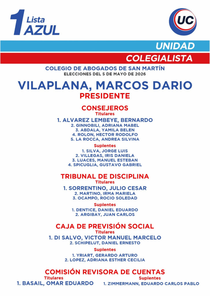 El martes 5 de mayo los matriculados habilitados a votar elegirán presidente; cinco consejeros titulares y cuatro suplentes; tres integrantes titulares del Tribunal de Disciplina y dos suplentes; dos representantes titulares y dos suplentes para la Caja de Previsión Social; y un integrante titular y otro suplente para la Comisión Revisora de Cuentas.