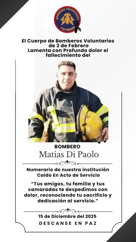 Matías Di Paolo, integrante del cuartel de Ciudadela, murió en el hospital Bocalandro, a donde fue trasladado de urgencia. Había llegado al lugar con un autobomba de Tres de Febrero y fue arrollado, junto a sus compañeros, por el conductor de un VW Bento que pasaba por el lugar. Conmoción entre servidores públicos y otra vez el reclamo: la zona está completamente oscura en la nocturnidad.