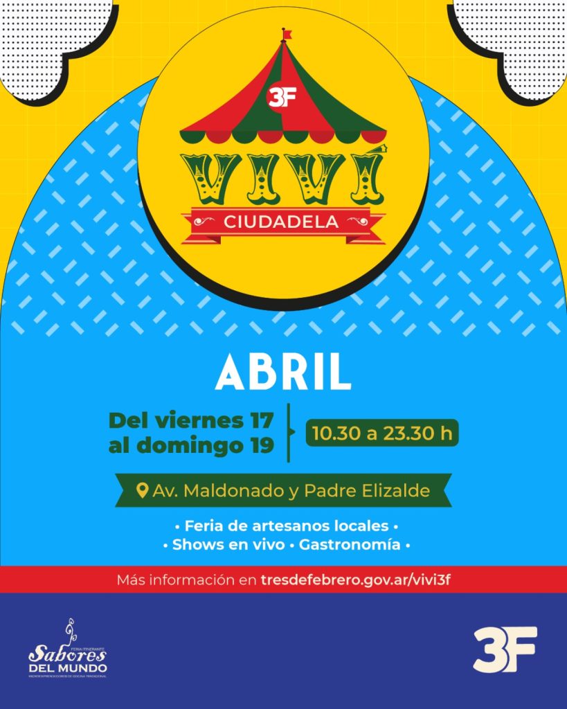 Desde la municipalidad queremos que la cultura siga desarrollándose en todos los barrios del distrito, por eso, te esperamos del viernes 17 al domingo 19 de abril, de 10.30 a 23.30 h en Av. Maldonado y Padre Elizalde para disfrutar una nueva edición del clásico festival Viví 3F.